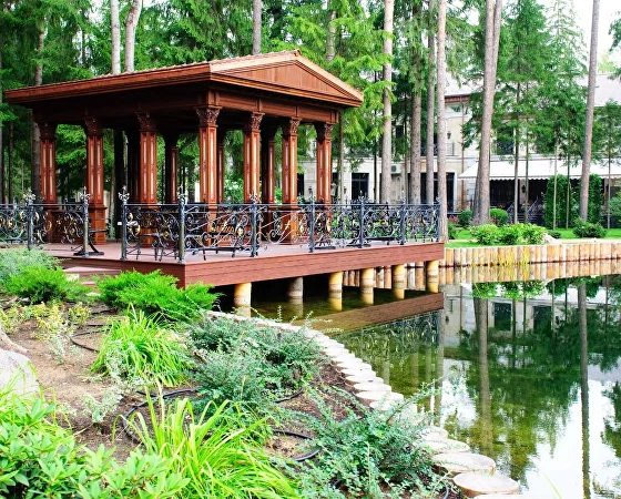 Также вы выполняем аквадизайн, создаём водоёмы, водопады, зимние садики, устанавливаем беседки, делаем мощение дорожек. Над каждым проектом работают десятки специалистов разного профиля, в том числе топографы, мастера по дренажу и поливу, строители, садоводы, цветоводы.